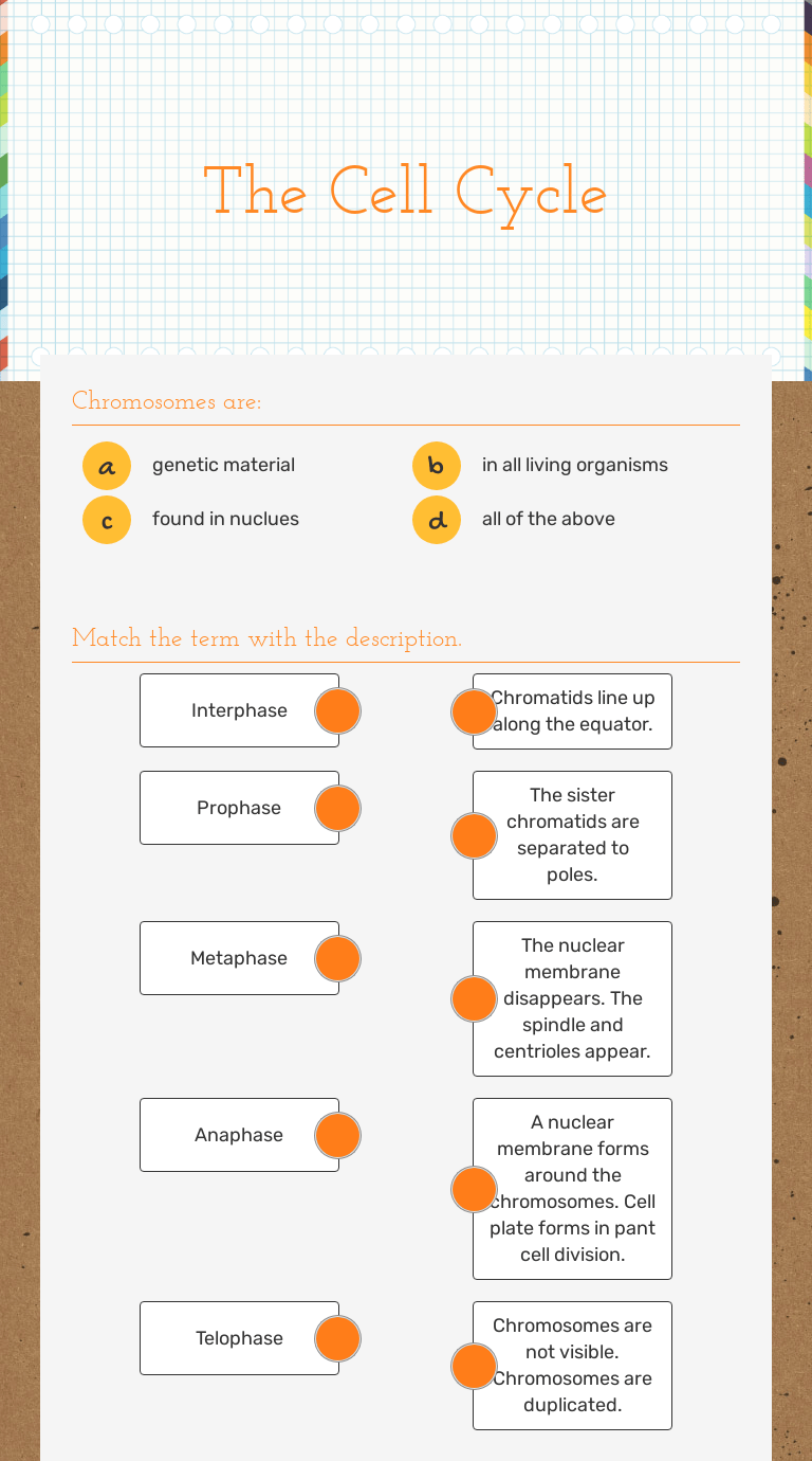 The series of events that take place in a eukaryotic cell between its formation and the moment it mitosis worksheet answer key. Stop a cell from going to the next stage of the .